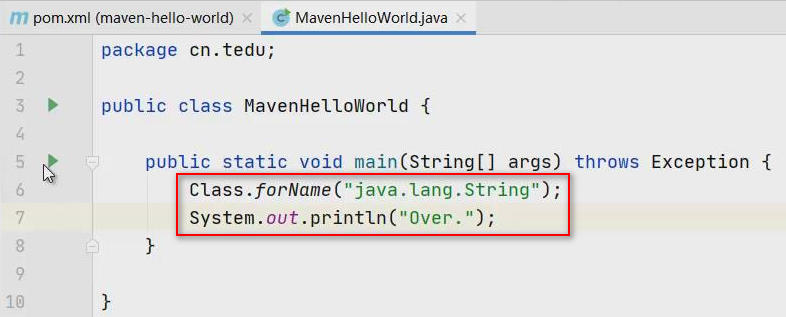 先在项目中创建cn.tedu包,在这个包中创建MavenHelloWorld类: