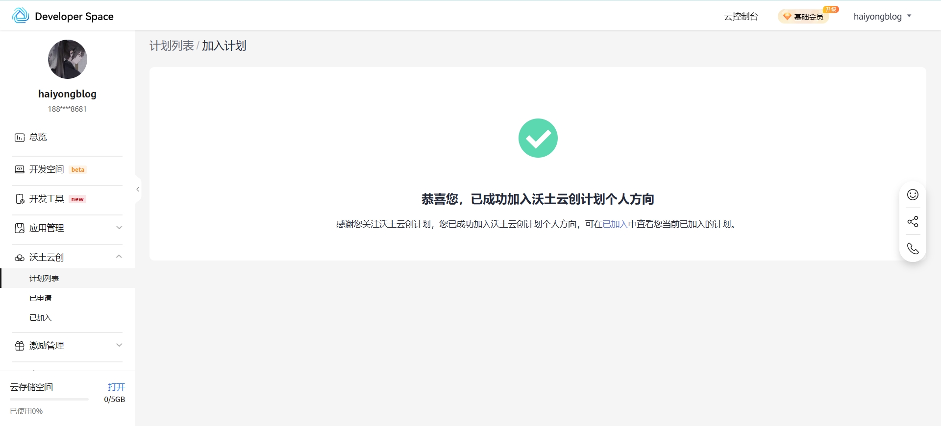 2.然后进入开发者空间:https://developer.huaweicloud.com/space/incentive/program-activity